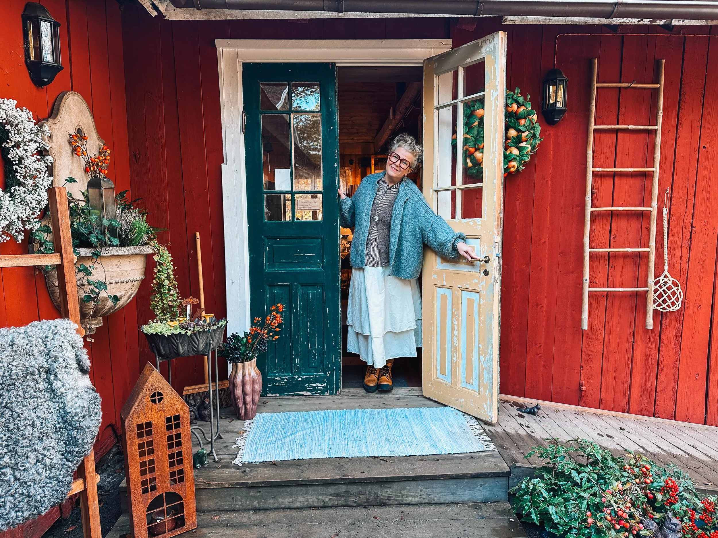 Butiken är belägen mitt i Varnhem och är från början en gammal uthuslänga som sedan med varsam hand gjorts om till gårdsbutik. Hyllorna är fyllda med allt från dansk design till hemmavirkade grytlappar.